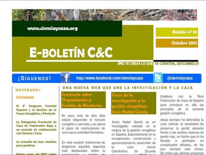 ¡Acabamos de publicar el boletín electrónico de Ciencia y Caza del mes de Octubre!