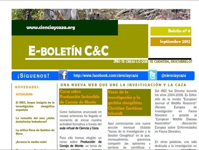 De nuevo publicamos el boletín electrónico mensual de nuestra web www.cienciaycaza.org.
