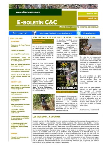 Ya está disponible el nuevo boletín electrónico de www.cienciaycaza.org del mes de abril.